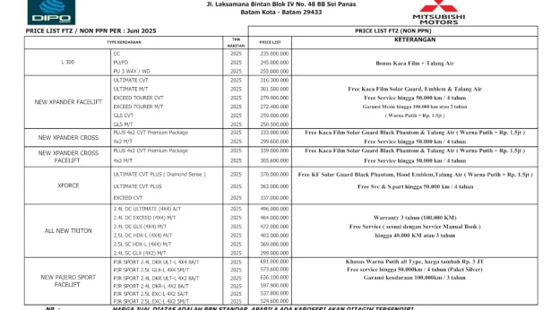 Harga Terbaru Mitsubishi Batam – Update Juni 2025